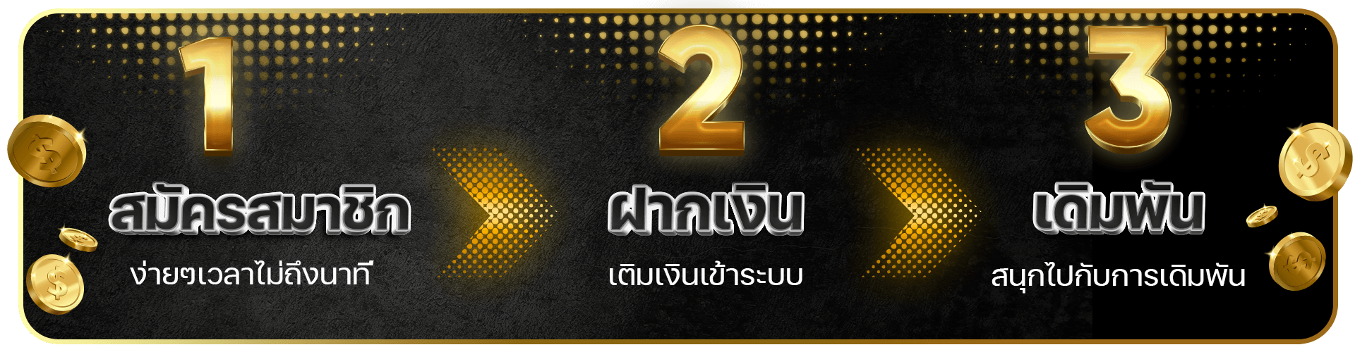 เริ่มต้นด้วยโบนัสต้อนรับสมาชิกใหม่ที่สุดคุ้ม เพียงสมัครสมาชิกและทำการฝากเงินครั้งแรก คุณจะได้รับโบนัสเพิ่มทันทีสูงถึง 100% สูงสุด 10,000 บาท นอกจากนี้ยังมีเครดิตฟรีให้ทดลองเล่นสำหรับสมาชิกใหม่อีกด้วย ทำให้คุณสามารถทดลองเล่นเกมต่างๆ ได้ก่อนตัดสินใจลงทุนจริง